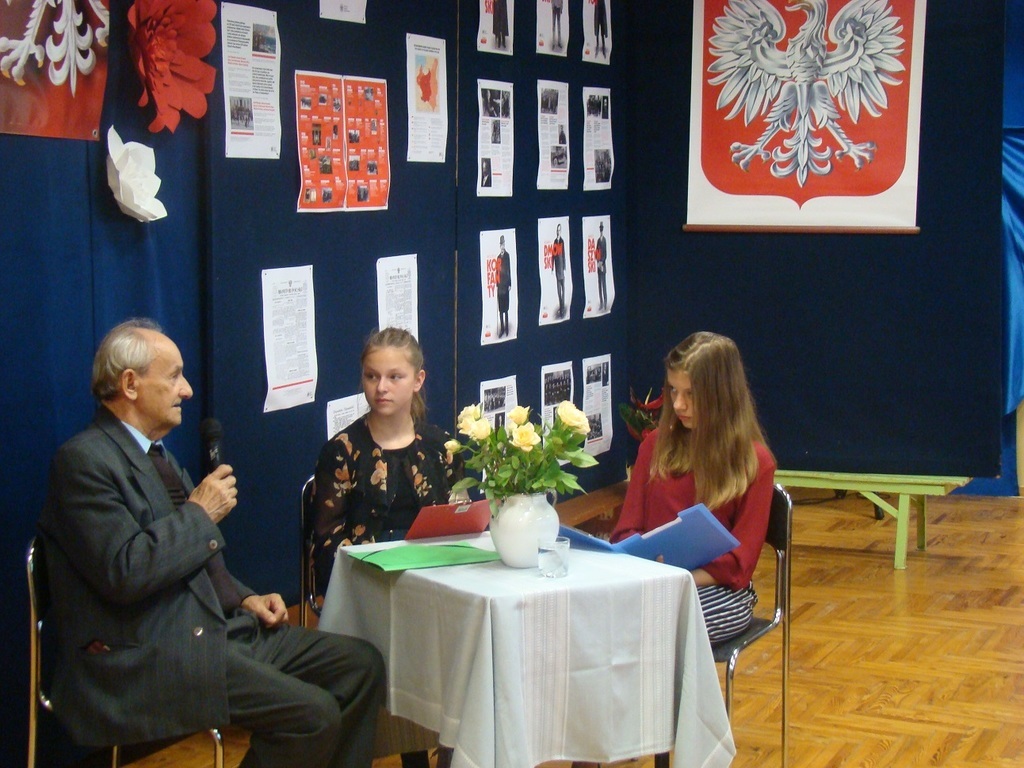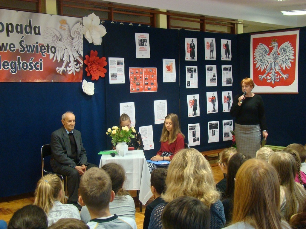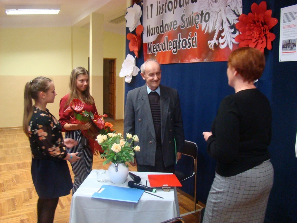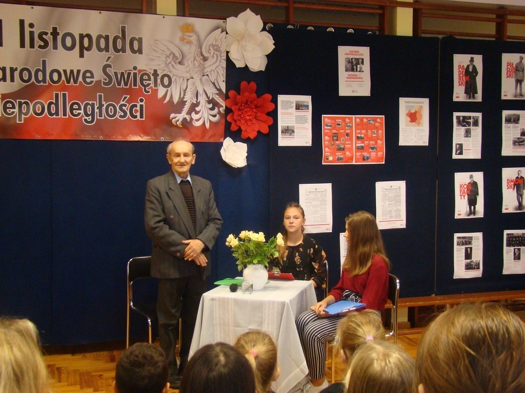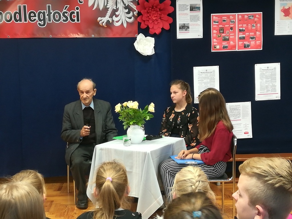 W dniu 14 listopada z okazji 100-lecia odzyskania przez Polskę niepodległości, w naszej szkole zorganizowane zostało spotkanie z ciekawym człowiekiem - z panem Marianem Tokarczykiem. Pan Marian Tokarczyk jest jednym z najstarszych mieszkańców Janikowa, który przeżył i pamięta okres II wojny światowej. Pan Tokarczyk opowiedział nam o tragicznym wydarzeniu dla Janikowa, jakie miało miejsce 3 listopada 1943 roku, przedstawił przebieg wysiedlenia wsi w 1944 r. oraz życie mieszkańców tuż po wojnie. Szczególnie zainteresowała nas historia powstania naszej szkoły oraz okoliczności utworzenia parafii w Janikowie. Spotkanie z Panem Tokarczykiem było dla nas żywą lekcją historii. Jesteśmy Mu bardzo wdzięczni, że przyjął zaproszenie i przybliżył nam historię naszej miejscowości.