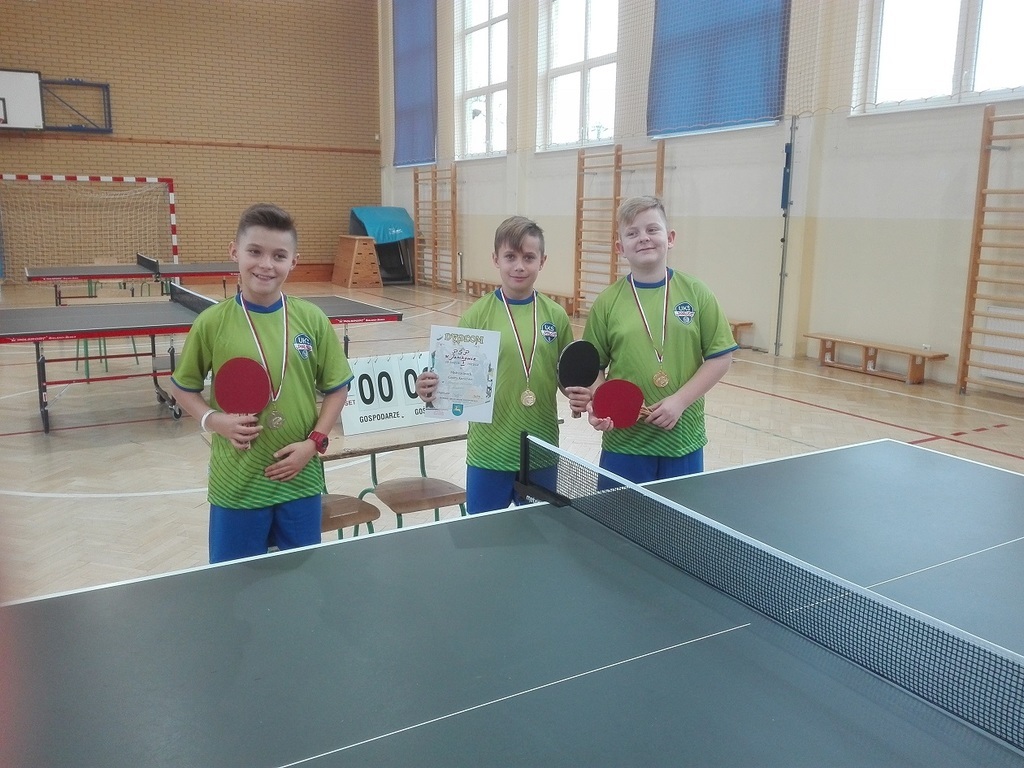 W dniu 24 XI 2018 r. w PSP w Janikowie odbyły się eliminacje gminne w tenisie stołowym chłopców klas VI i młodszych. W zawodach wzięło udział osiem szkół, które zostały podzielone na dwie grupy. W naszej grupie znalazły się PSP Ryczywół, PSP nr 1 i PSP nr 2 z Kozienic. Nasza drużyna, w składzie Marcel Wojciechowski, Mikołaj Wojcieszek i Jakub Nagadowski, wygrała wszystkie mecze w grupie i zajęła I miejsce. W finale turnieju spotkali się z drużyną z PSP nr 3 w Kozienicach i po zaciętym spotkaniu wygrali, zajmując I miejsce w turnieju. Nasz zespół będzie reprezentował Gminę Kozienice na zawodach powiatowych. Serdecznie gratulujemy!