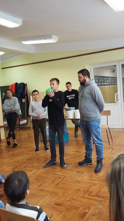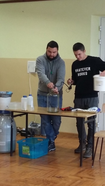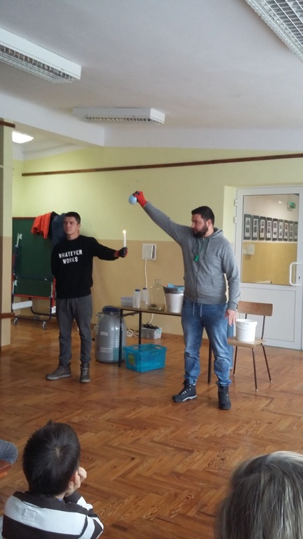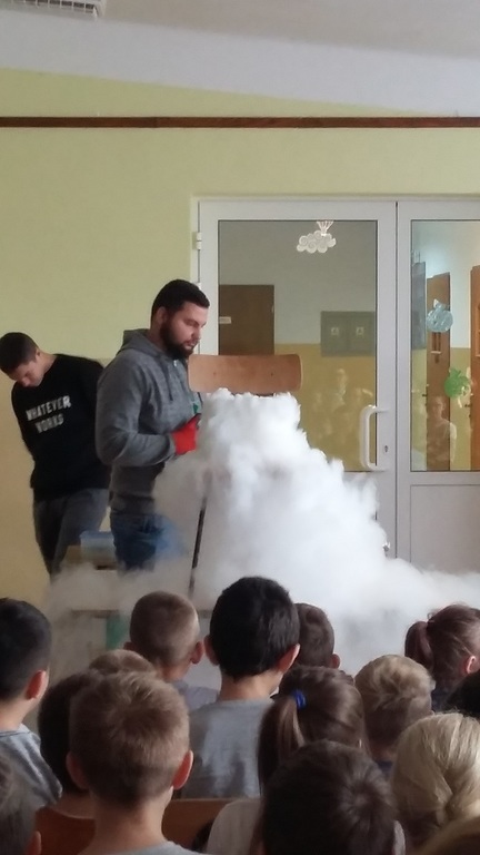 We wtorek 27.11.2018 r. naszą szkołę odwiedziła dwuosobowa grupa animatorów z Lublina o nazwie ,,Zelektryzowani’’. Nasi goście przybliżyli nam tajniki wiedzy z dziedziny chemii i fizyki, które to niejednemu "siódmo-" i "ósmoklasiście" spędzają sen z powiek. Podczas tej niecodziennej lekcji "Zelektryzowani" zaprezentowali widowiskowe eksperymenty i doświadczenia naukowe, wśród których znalazły się: wybuchowa zabawa z wodorem, nadmuchiwanie powietrzem rękawa foliowego, sprężanie pary wodnej oraz "azotowy dym". Dużą atrakcją dla naszych uczniów była możliwość aktywnego uczestnictwa w eksperymentach, szczególnie tych, w których widzowie mogli na własnej skórze zbadać właściwości helu, czy umiejętności ludzkiego mózgu. Prowadzący zwrócili również uwagę na kwestię bezpieczeństwa podczas pokazu i przestrzegli widzów przed samodzielnym przeprowadzaniem podobnych eksperymentów w warunkach domowych.