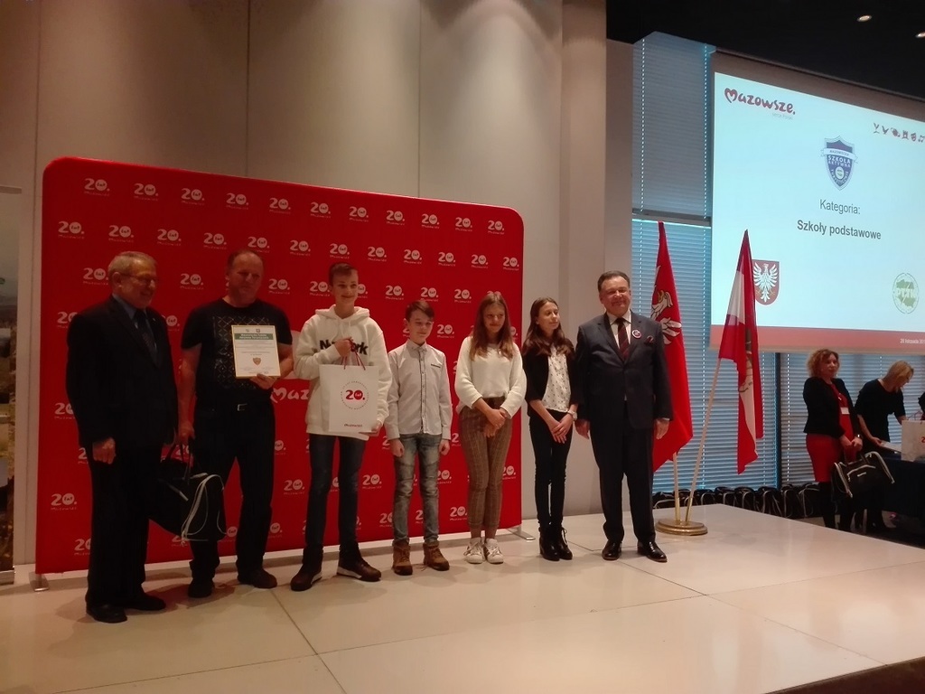 W środę 28 XI 2018 r. w Warszawie odbyło się podsumowanie konkursu wojewódzkiego Mazowiecka Szkoła Aktywna Turystycznie 2018. Zanim wzięliśmy udział w uroczystości mieliśmy okazję zwiedzić Stare Miasto oraz Muzeum Sportu i Turystyki. O godzinie 13 rozpoczęło się uroczyste podsumowanie. W kategorii szkół podstawowych nasza szkoła uzyskała I miejsce i tytuł Złotej Mazowieckiej Szkoły Aktywnej Turystycznie 2018. Przedstawiciele naszej placówki otrzymali gratulacje z rąk Marszałka Województwa Adama Struzika.