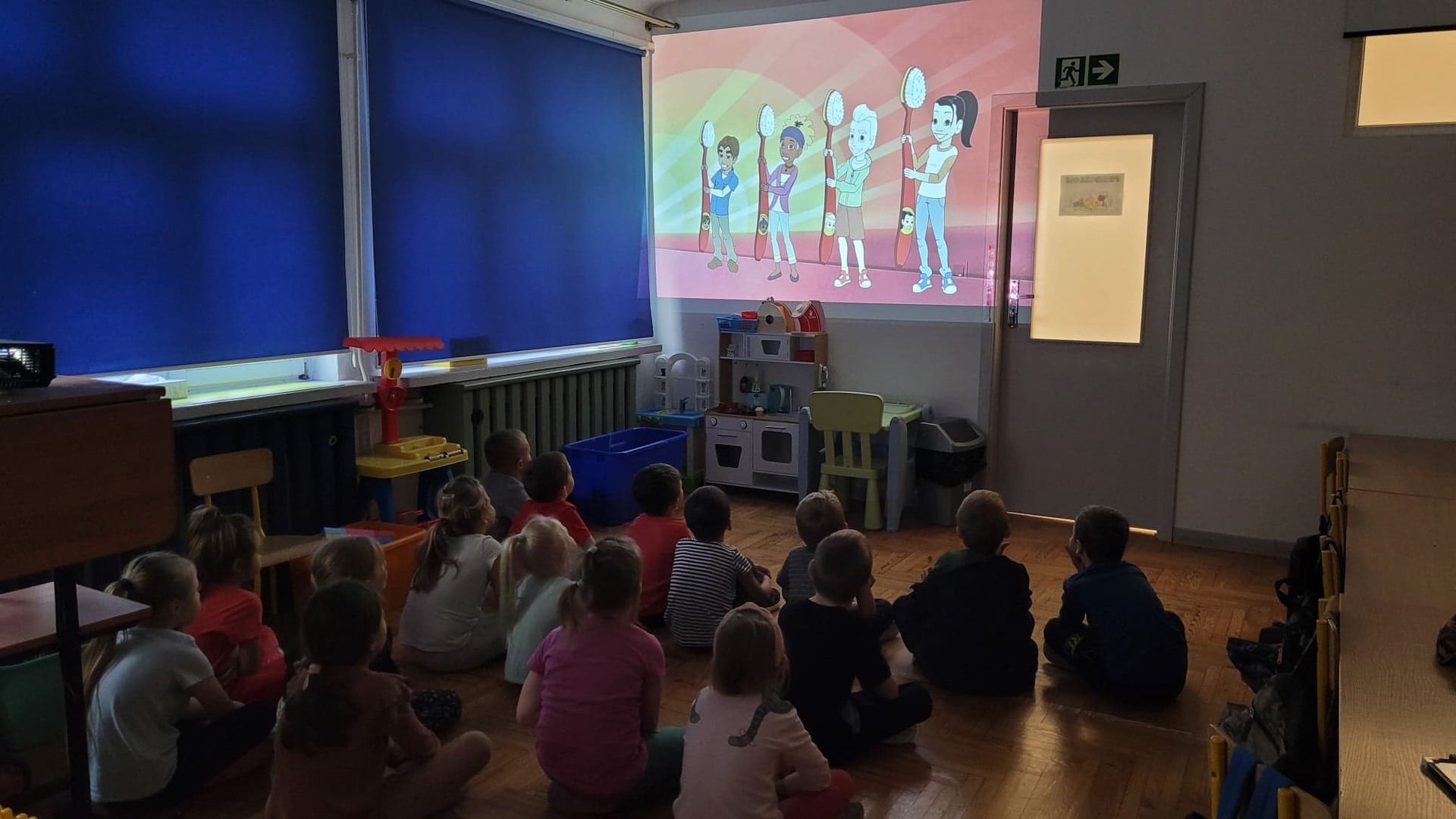 Dzieci obejrzały film animowany o panu Próchnickim, który w przystępny sposób pokazał, jak powinny one dbać o zęby, aby uchronić je przed próchnicą. Na zakończenie maluchy otrzymały kalendarze i przypinki.
