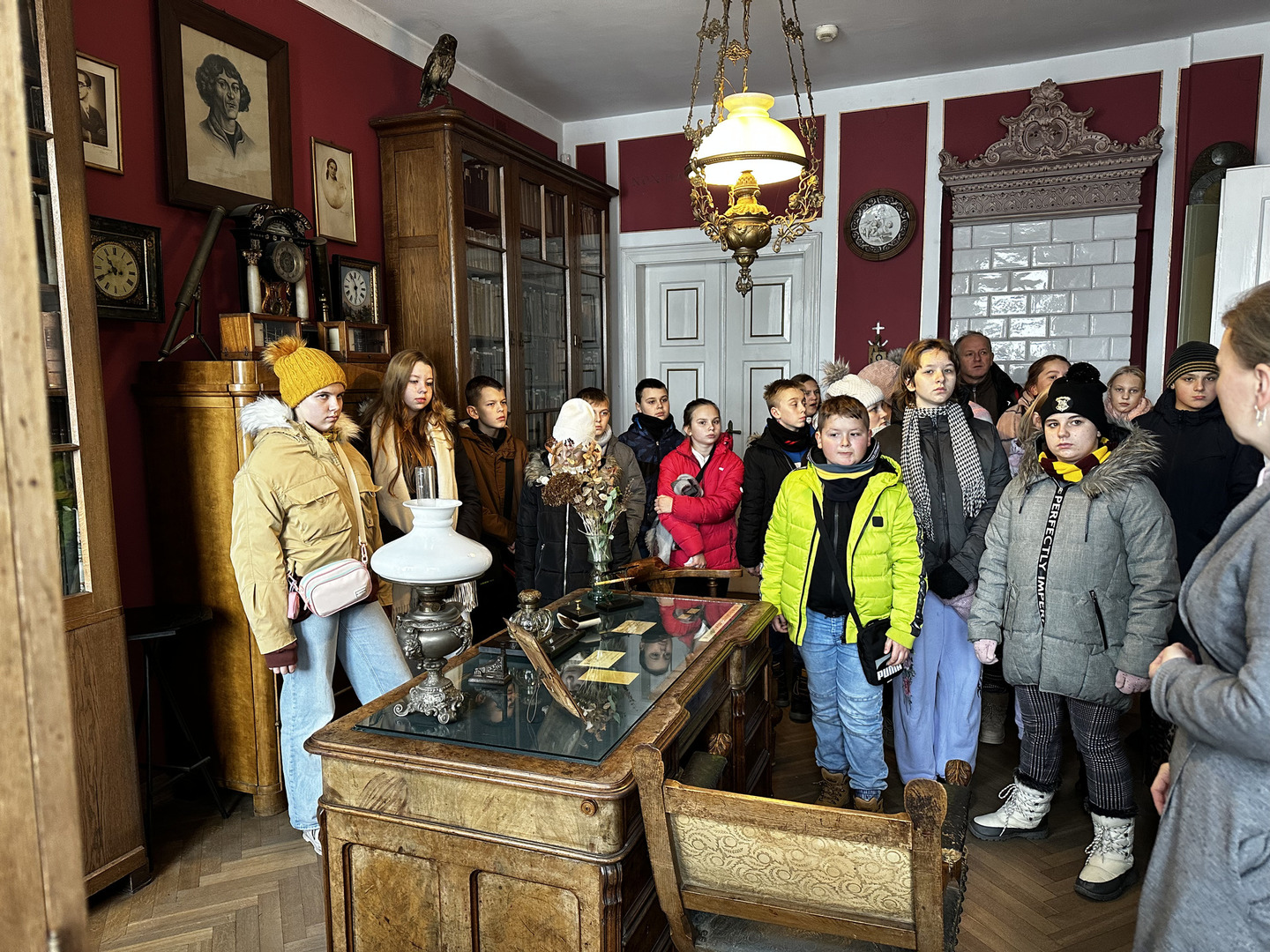 Kolejny przystanek był w Jędrzejowie, gdzie zwiedziliśmy Muzeum im. Przypkowskich. Muzeum to specjalizuje się głównie w prezentacji zegarów słonecznych i przyrządów astronomicznych. Powstało ono w oparciu o prywatną kolekcję lekarza z Jędrzejowa- Feliksa Przypkowskiego, który od 1895 roku gromadził zabytkowe zegary słoneczne, a także literaturę i inne materiały poświęcone gnomonice. Zobaczyliśmy zegary słoneczne, zegary wodne, klepsydry,świece zegarowe. Kolekcja zegarów w Jędrzejowie zajmuje trzecie miejsce w świecie pod względem liczebności i wartości eksponatów. Uczniowie z zaciekawieniem oglądali zbiory zgromadzone w muzeum.
