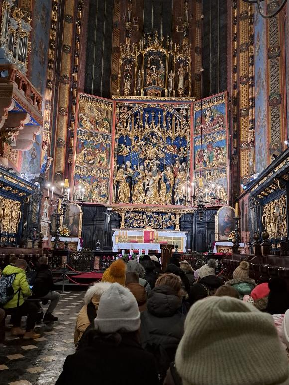 Z przewodnikiem spacerowaliśmy również po Rynku Głównym, wokół którego znajduje się kościół Mariacki, wieża ratuszowa i Sukiennice- pozostałość po dawnych kramach kupieckich. Obejrzeliśmy też wzgórze wawelskie. Zamek Królewski na Wawelu wraz ze wzgórzem wawelskim to jedno z najbardziej znaczących historycznie i kulturalnie miejsc w Polsce. Był przez wieki siedzibą królów polskich i symbolem państwowości. Mieszko obrał Wawel na jedną ze swych siedzib. Szczególny rozkwit przeżywał Wawel w wiekach XIV-XVI, za panowania ostatnich Piastów i Jagiellonów. Zamek był wielokrotnie niszczony i grabiony w czasie działań wojennych. Dzieci zachwycone były pomnikiem smoka wawelskiego. Zwieńczeniem długiego dnia był spacer po kramach i straganach, które w świątecznej scenerii tworzyły niesamowity nastrój. Po wyczerpującym dniu udaliśmy się do hotelu.