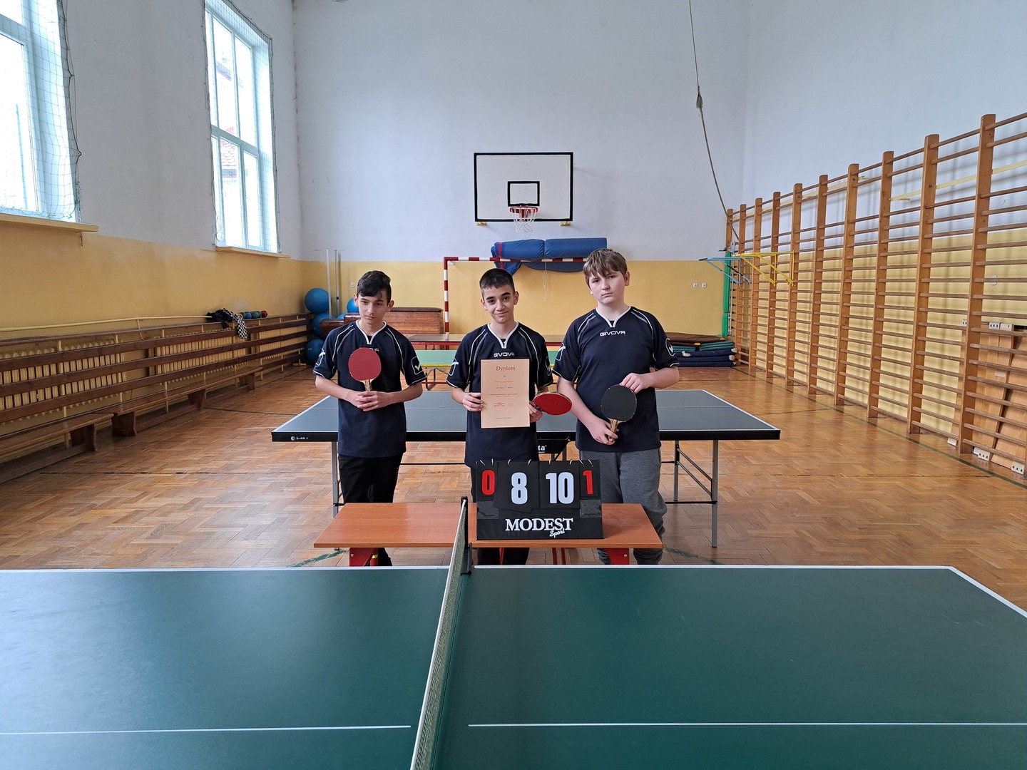 W sobotę 04 lutego chłopcy z klasy ósmej wzięli udział w powiatowym turnieju tenisa stołowego. Drużyna w składzie :M. Wasiński, K. Lenarczyk, K. Jaroszek nie miała sobie równych. Pokonując drużynę z PSP nr 3 w Kozienicach i z PSP w Grabowie n/Pilicą zajęli I miejsce w turnieju. Zwycięstwo dało naszej drużynie awans na zawody międzypowiatowe. W kolejną sobotę lutego taki sam turniej rozegrali uczniowie klas VI w składzie: F. Łyszcz, Sz. Mickiewicz, E. Wójcik. Nasi uczniowie zakończyli turniej z brązowymi medalami.