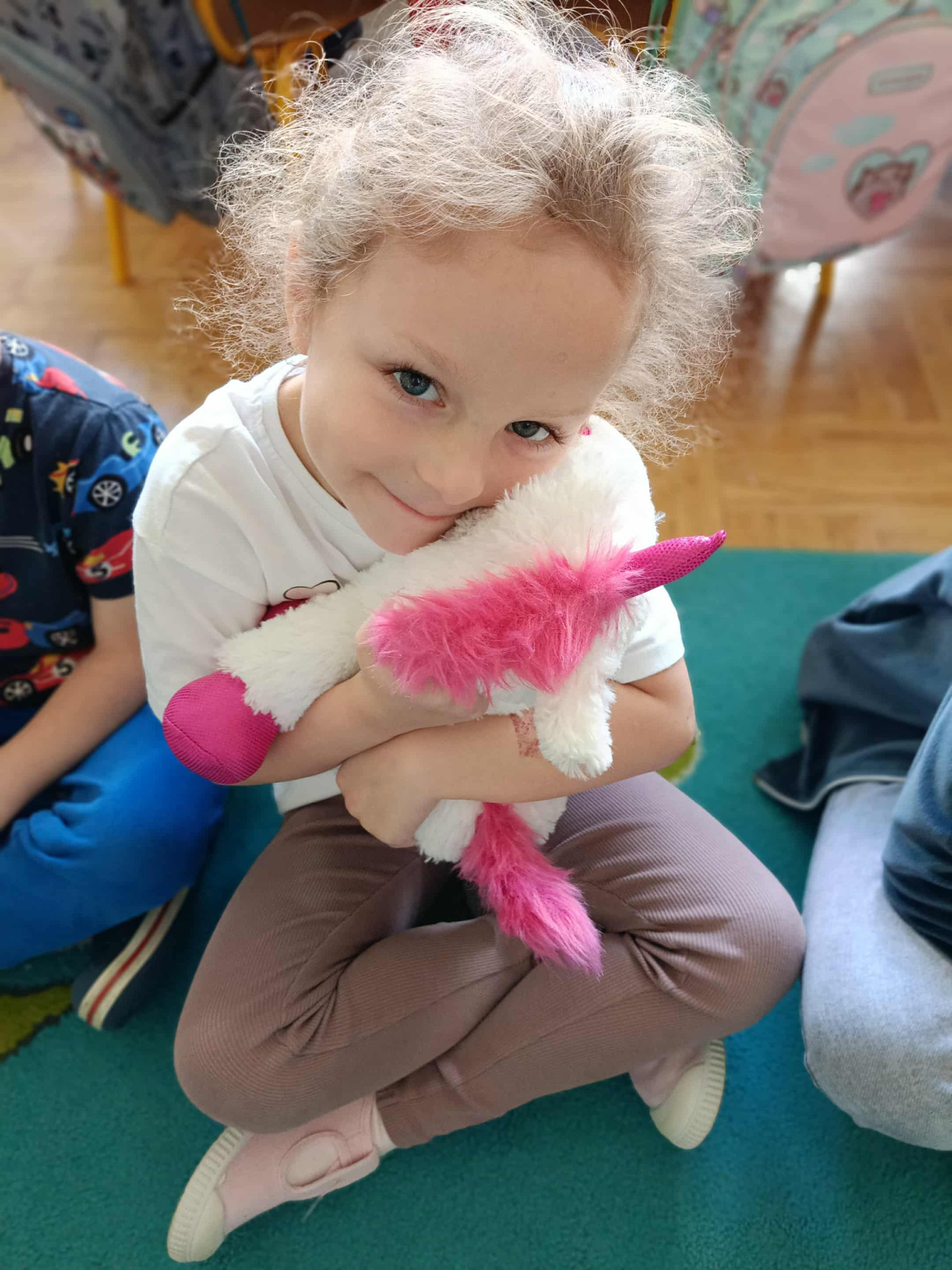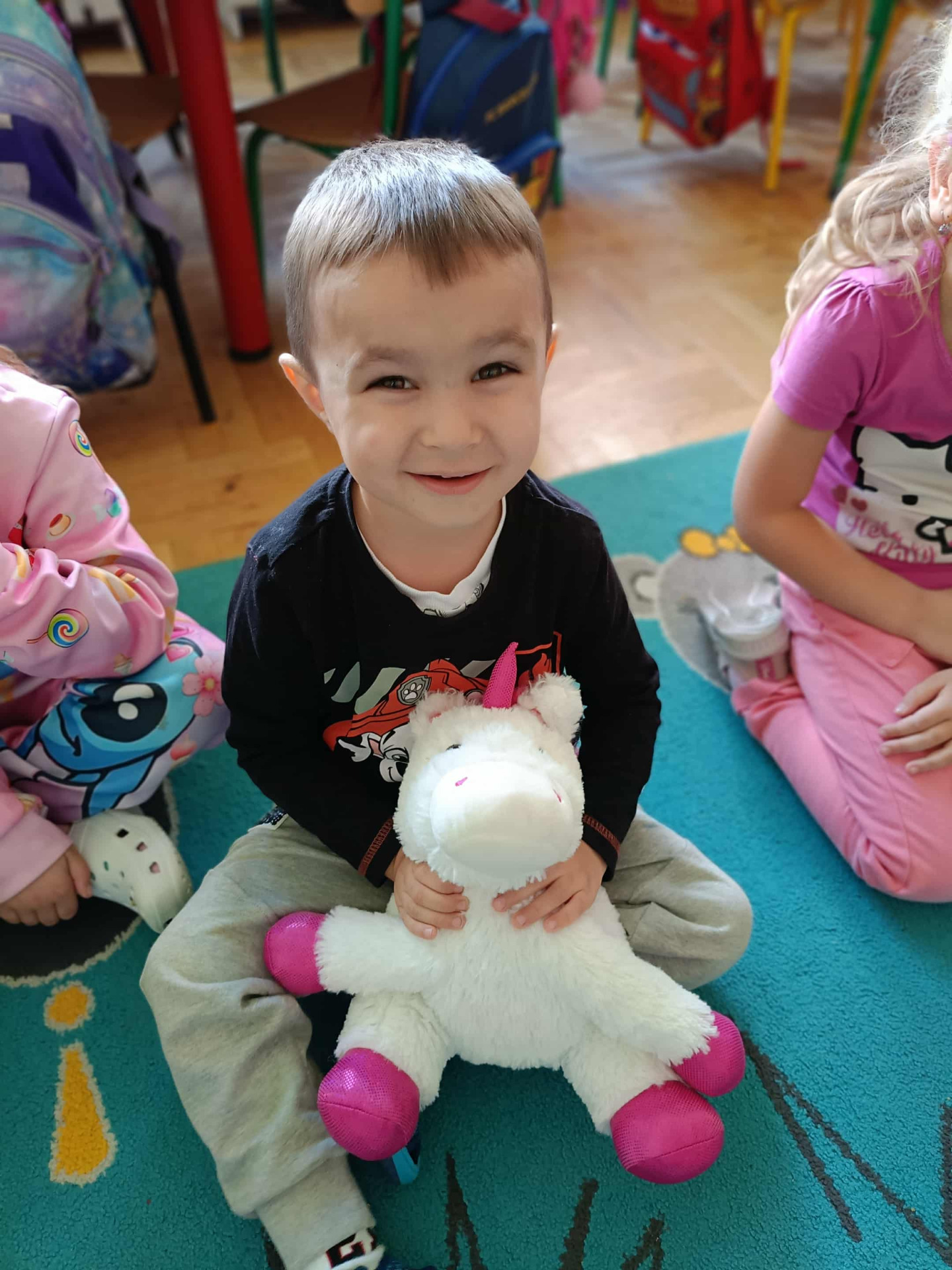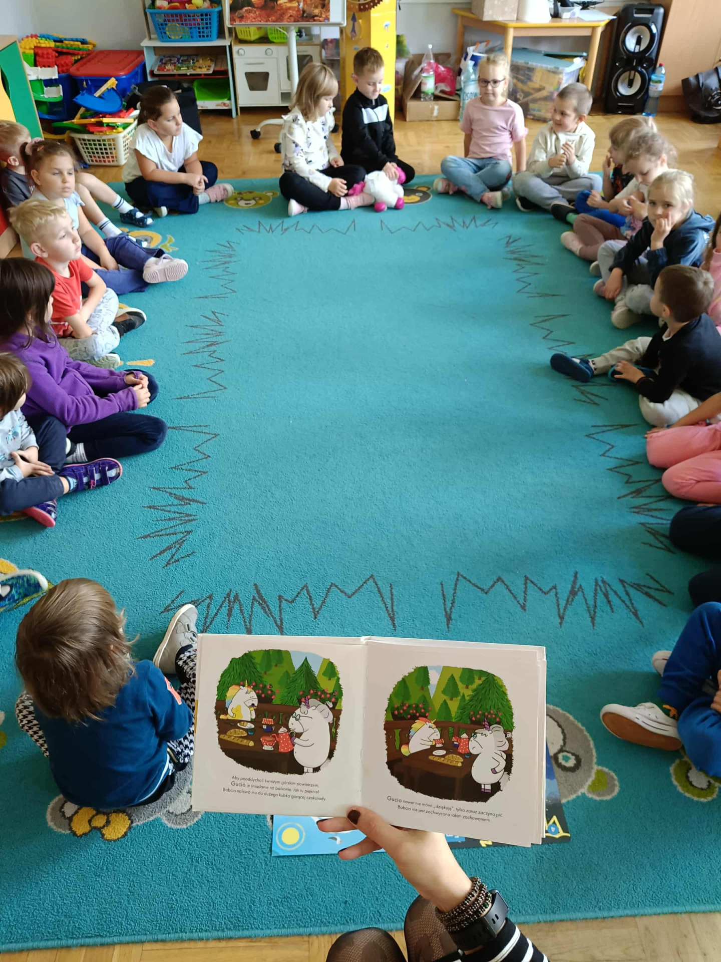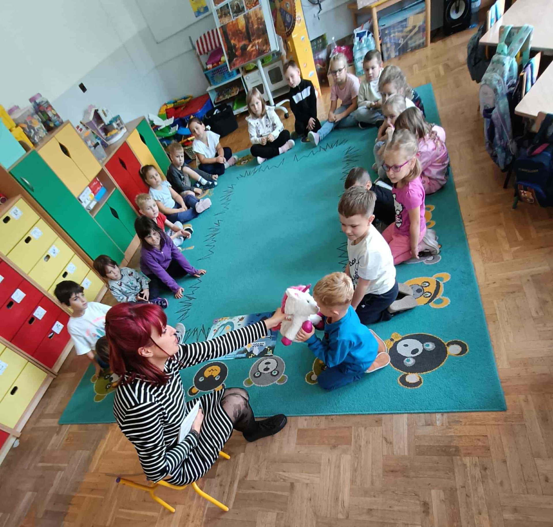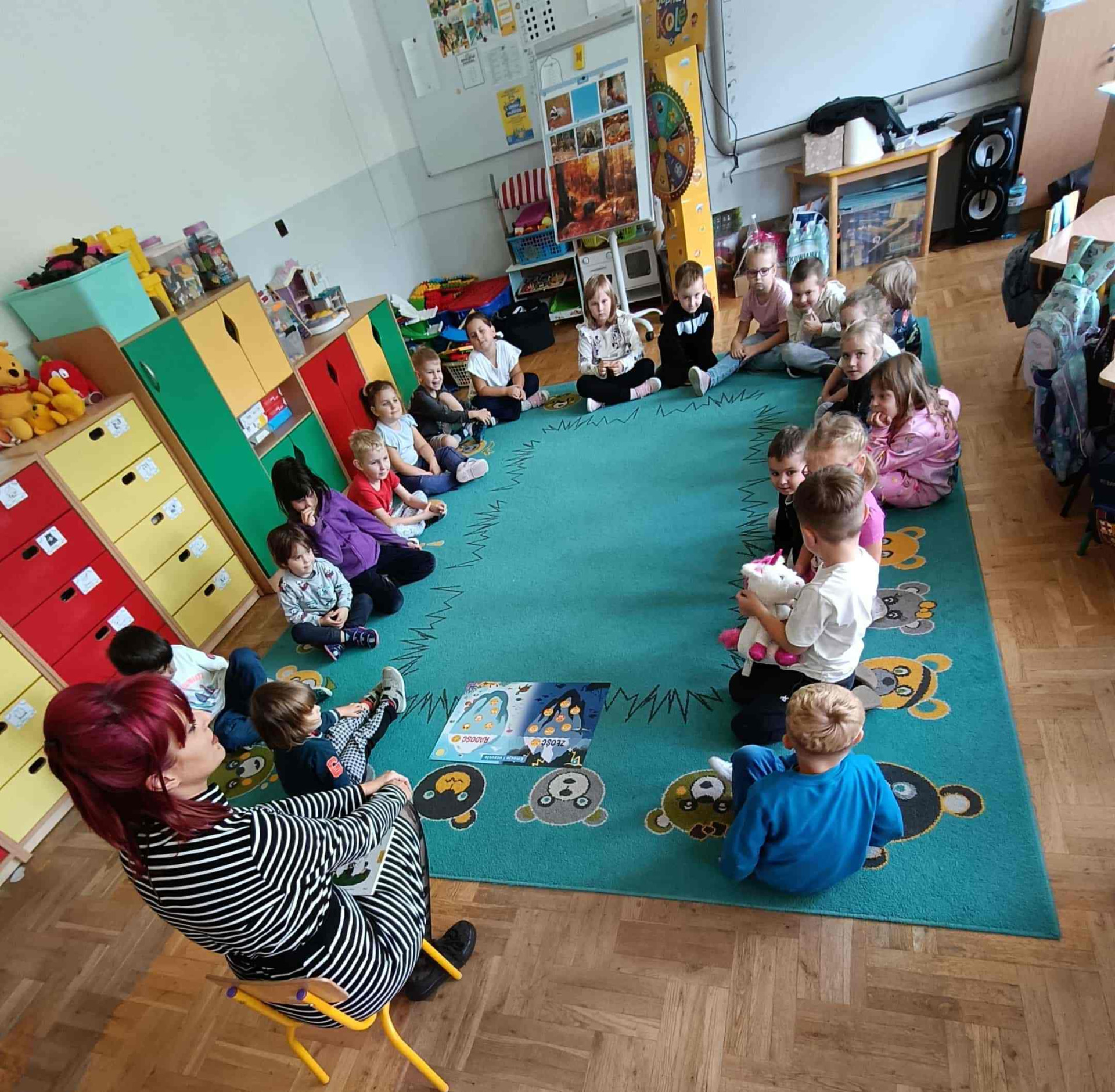 Zajęciom towarzyszy maskotka jednorożca Gucia, która budzi uśmiech i zaufanie przedszkolaków, a także pomaga im lepiej wczuć się w tematykę zajęć.