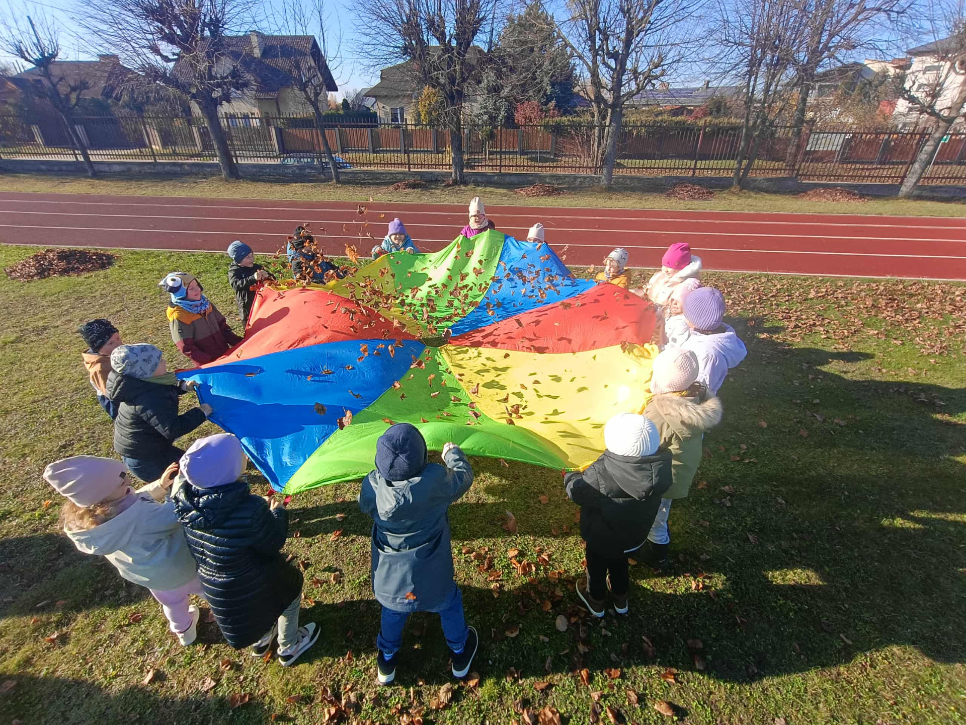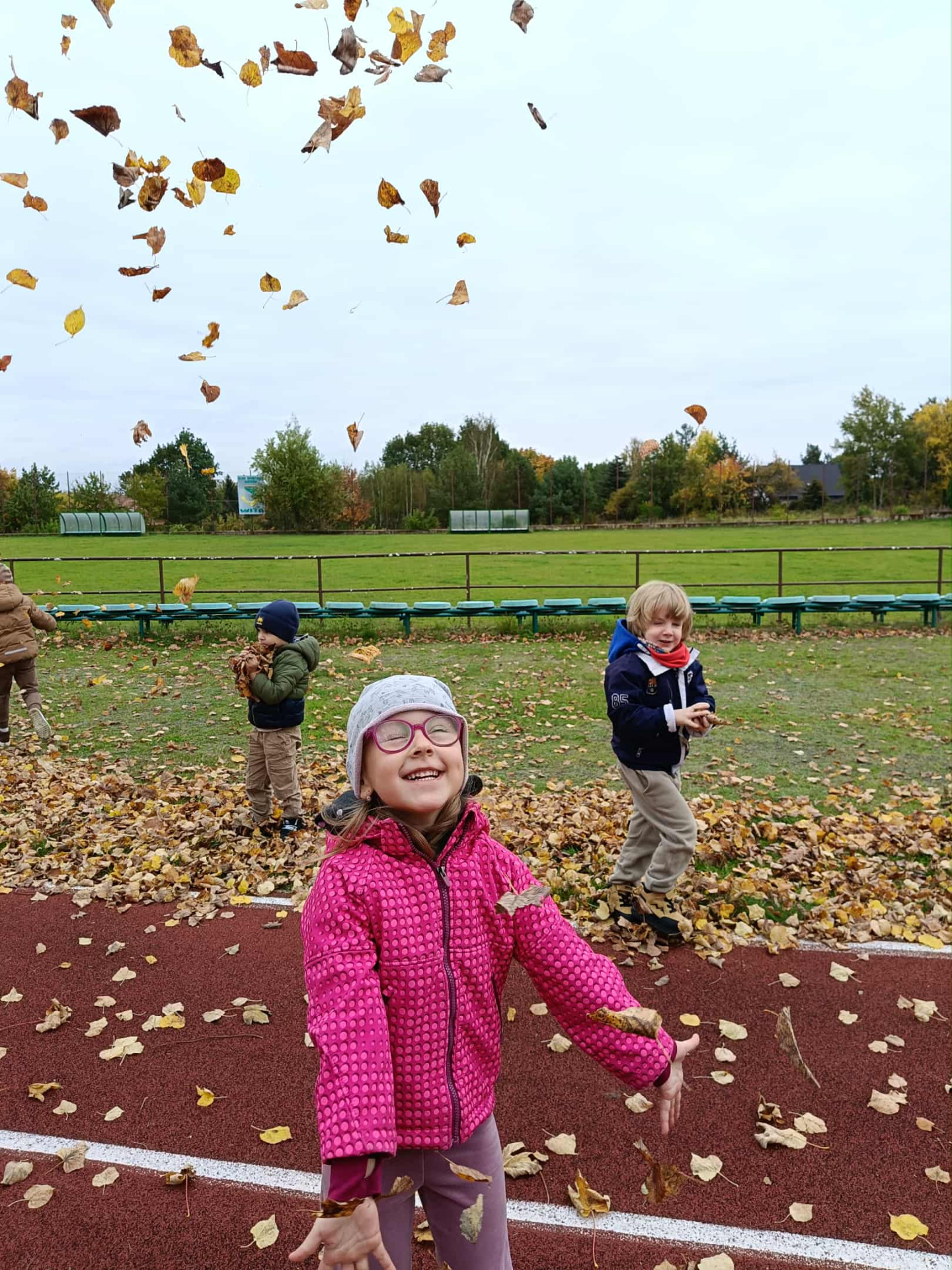 Jesień to wyjątkowa pora roku – pełna barw, zapachów i niezliczonych okazji do zabawy na świeżym powietrzu! Nasze przedszkolaki z radością wykorzystały piękną pogodę, by spędzić czas na świeżym powietrzu, bawiąc się kolorowymi liśćmi, które spadły z drzew.