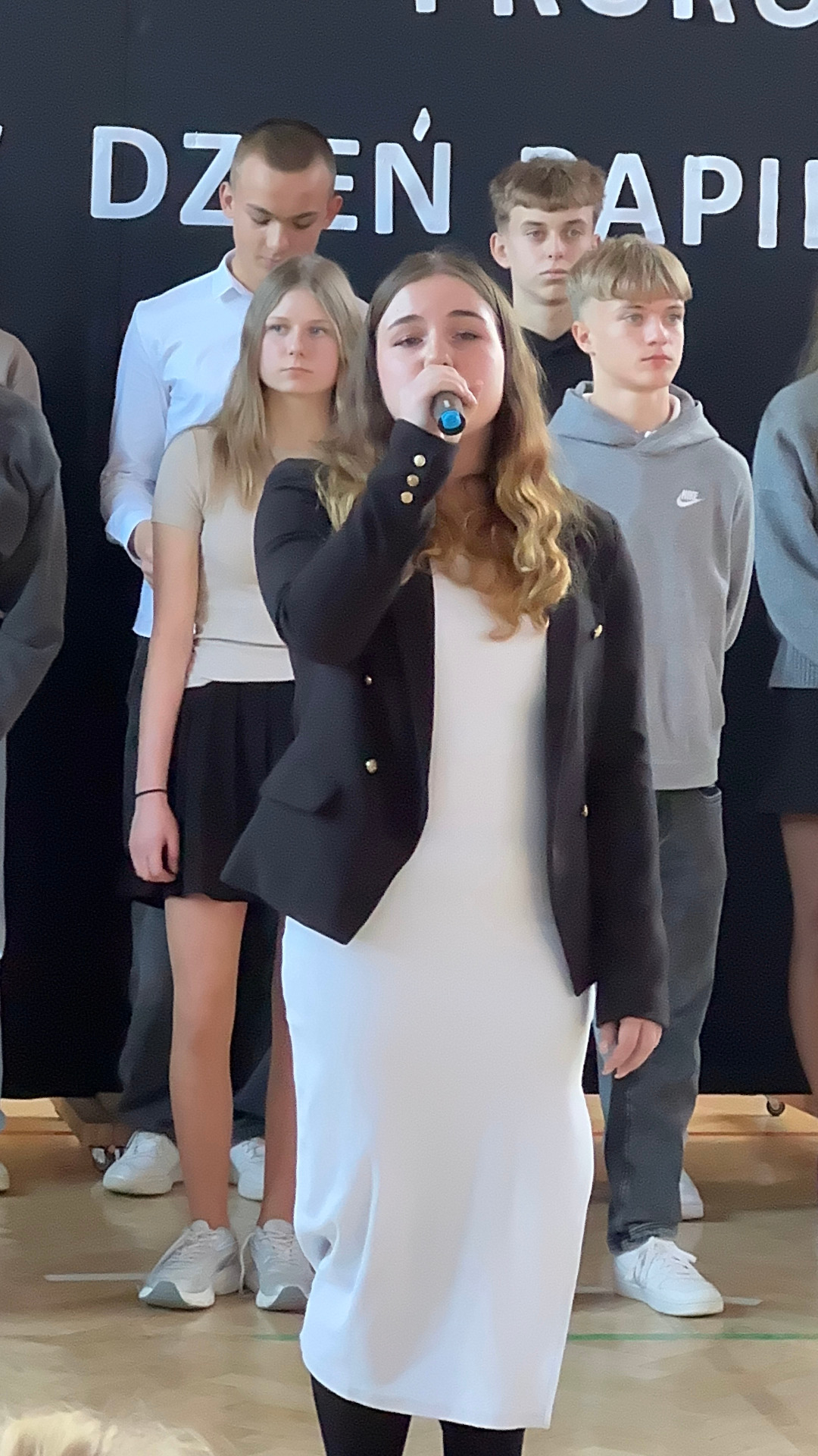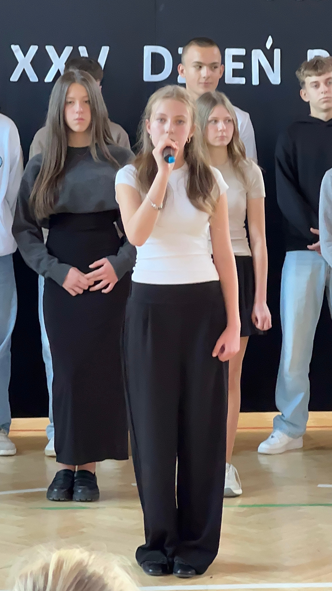 Klasa VIII spisała się wspaniale! Z ogromnym zaangażowaniem i sercem przygotowała uroczystość, która poruszyła całą społeczność szkolną. Występ uczniów był pełen powagi, refleksji i szczerych emocji.
