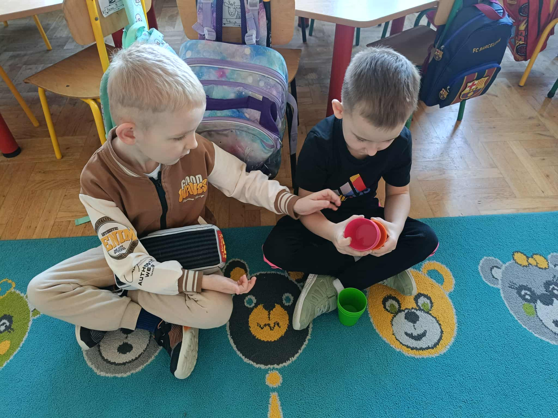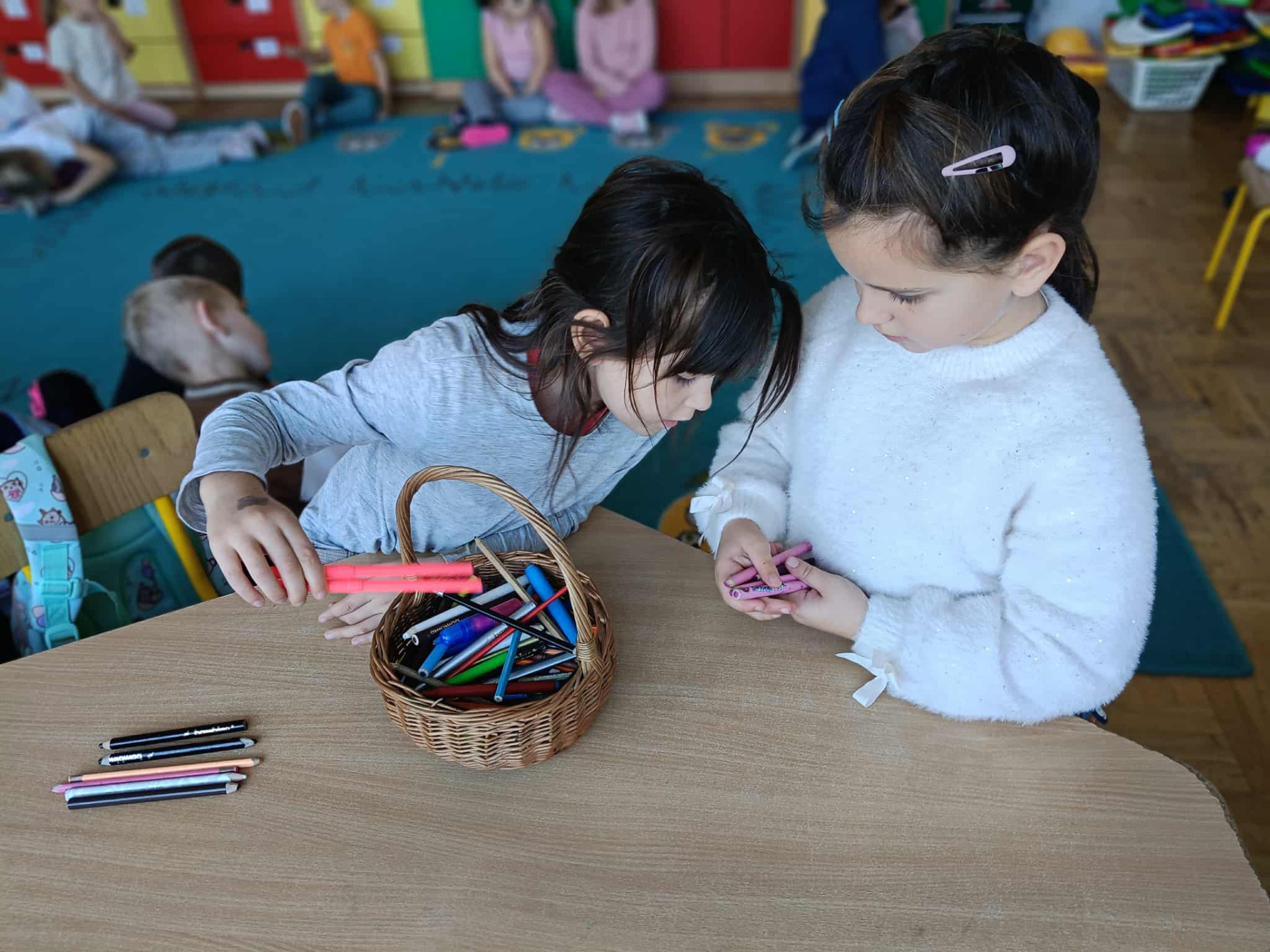 Aby lepiej zrozumieć tę wartość, dzieci pracowały w małych grupach, odgrywając krótkie scenki przedstawiające sytuacje dzielenia się zabawkami, kredkami, maskotkami czy klockami. Dzięki zabawie mogły zobaczyć, że pomaganie i okazywanie życzliwości sprawia radość nie tylko osobie obdarowanej, ale również tej, która daje coś od siebie.