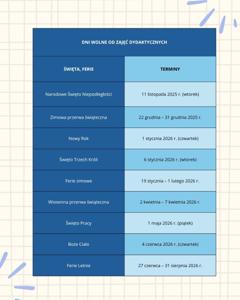 Terminy dni wolnych w roku szkolnym 2025/2026